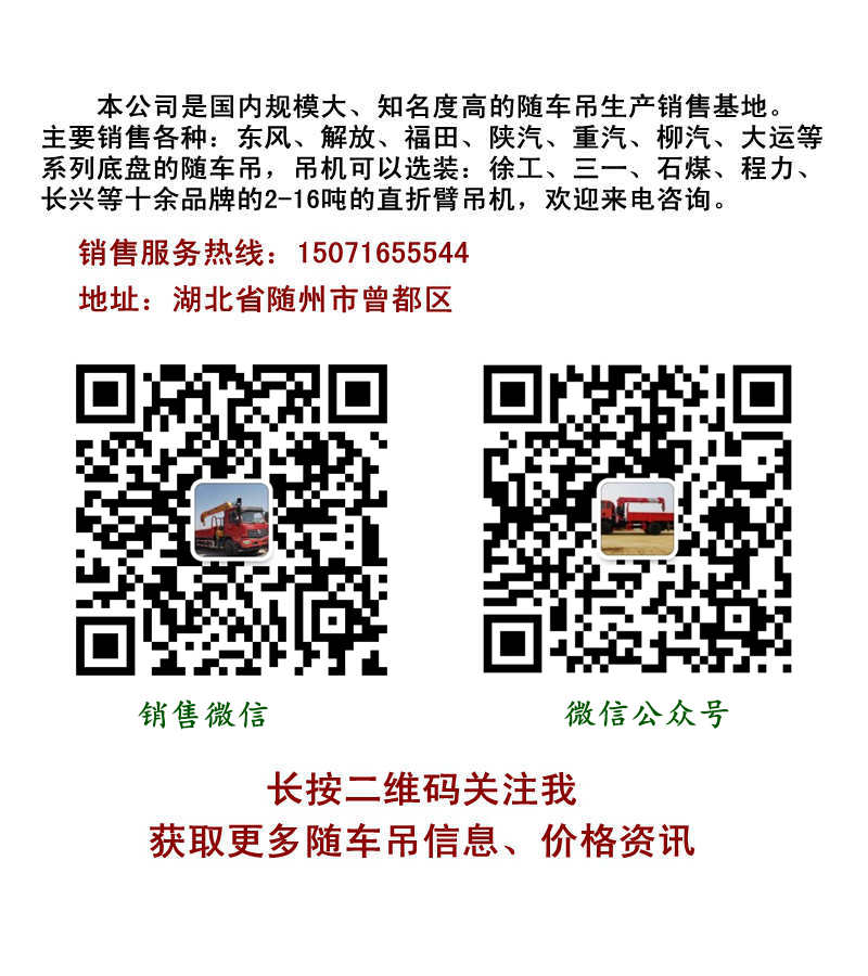 我公司專業(yè)銷售各種隨車吊 ,常年備有各種現(xiàn)車幾十輛,服務(wù)電話:15071655544(微信同號(hào)) 周經(jīng)理。