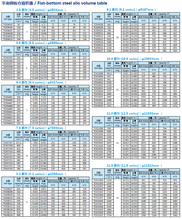 適于儲(chǔ)存糧食、種子、飼料、塑料粒、水泥煤炭及其他顆粒、粉狀物料。用于糧庫、面粉廠、糧米廠、油脂廠、麥芽廠、啤酒廠、港口、農(nóng)場(chǎng)、糧食處理中心、煤礦等單位,作為基層收納倉、暫寸倉、中轉(zhuǎn)倉、原料倉、儲(chǔ)備糧食及其他用途。